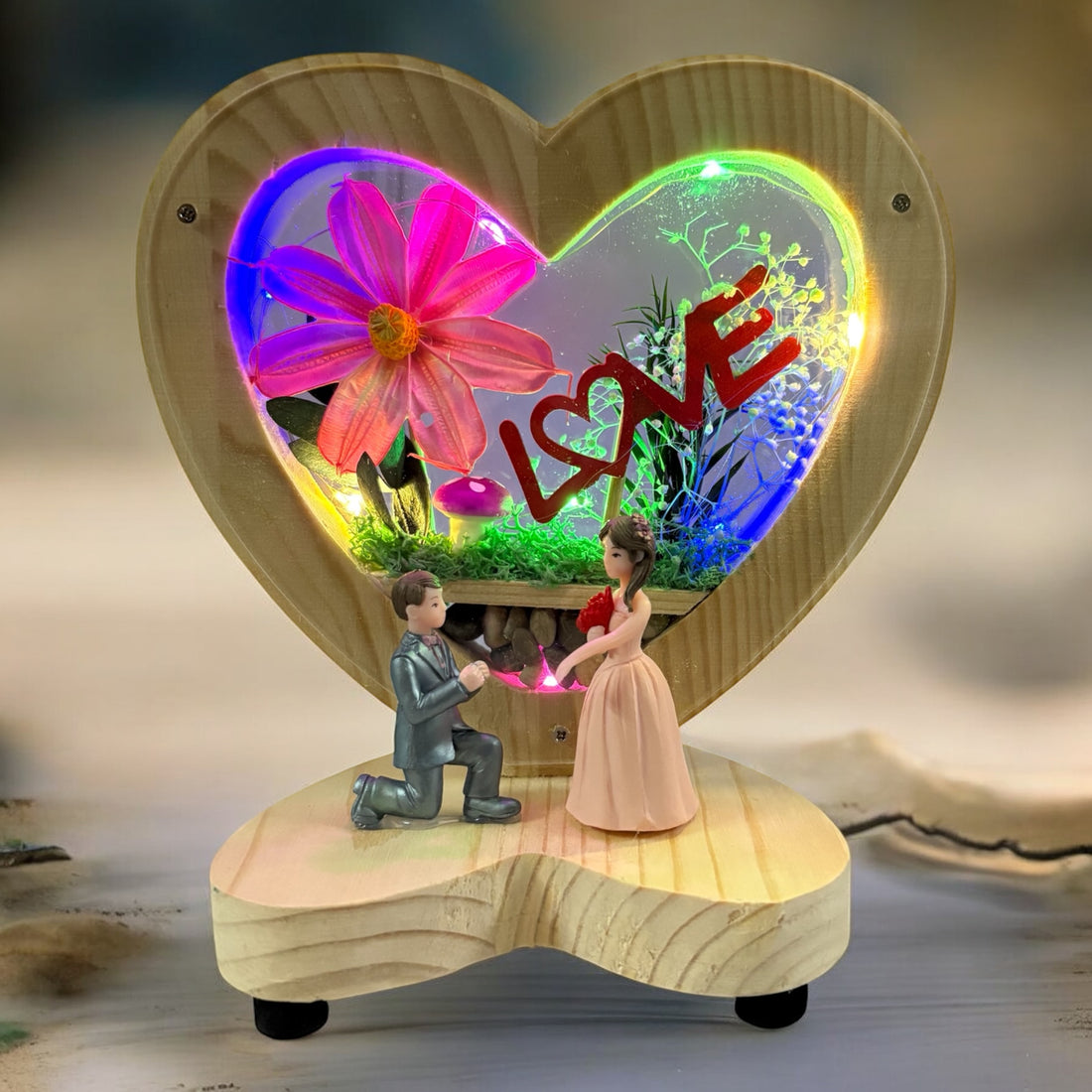 Heart Shape Wooden Showpiece with Light | Proposal Love Figurine 💍✨