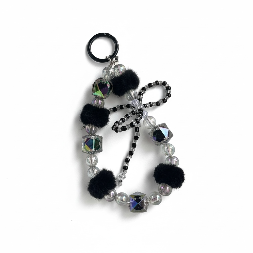🖤✨ Black Beaded Bow Mobile Charm – Cute & Chic 🎀
