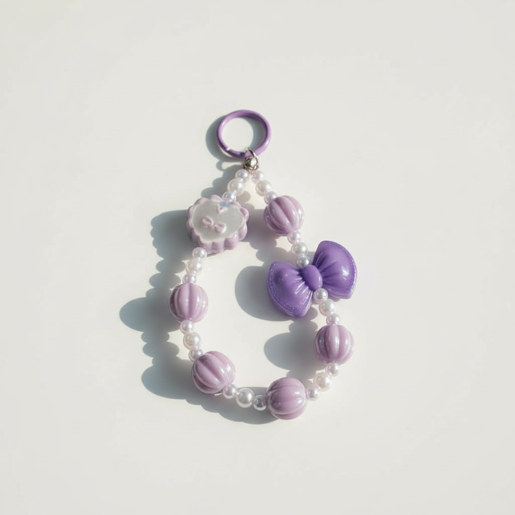 💜🎀 Super Cute Lilac Beaded Bow Mobile Charm ✨