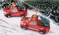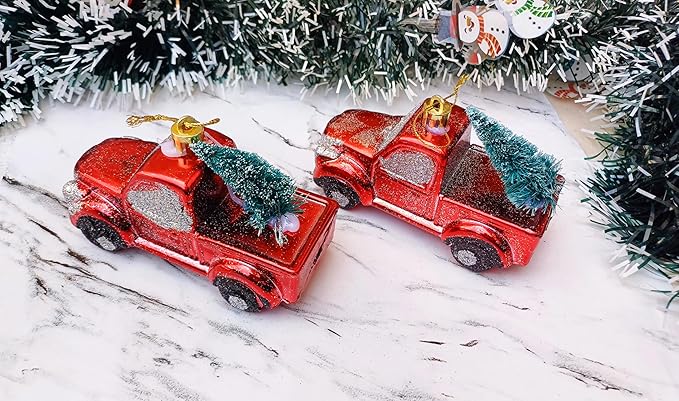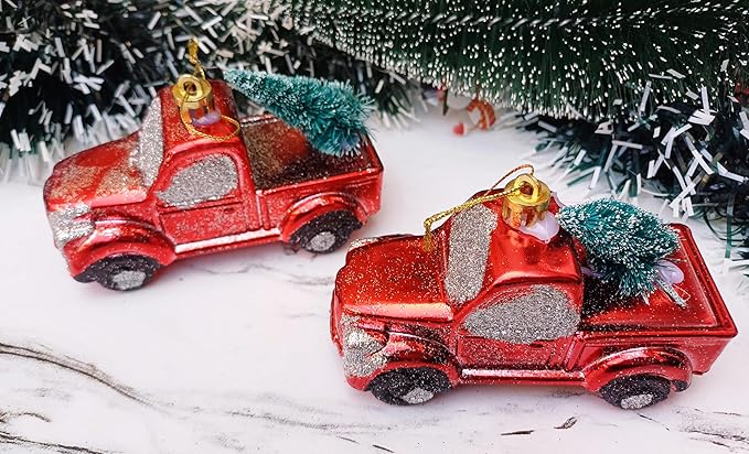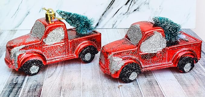 2 Pcs Santa Claus Vintage Red Car Xmas Ornaments