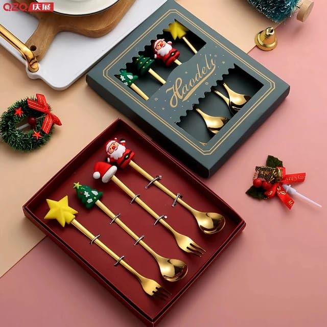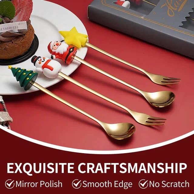 Christmas Stainless Steel Cutlery Set – 4 Pcs Spoons & Forks Gift Set for Holiday Dining