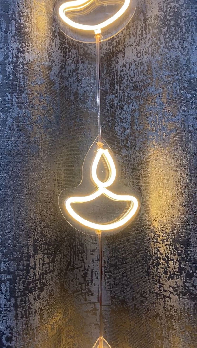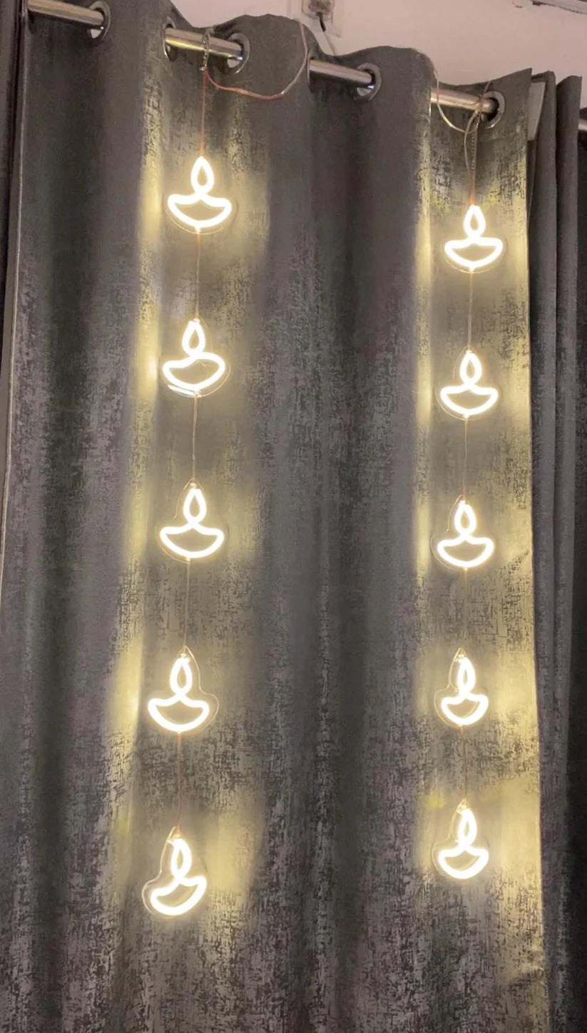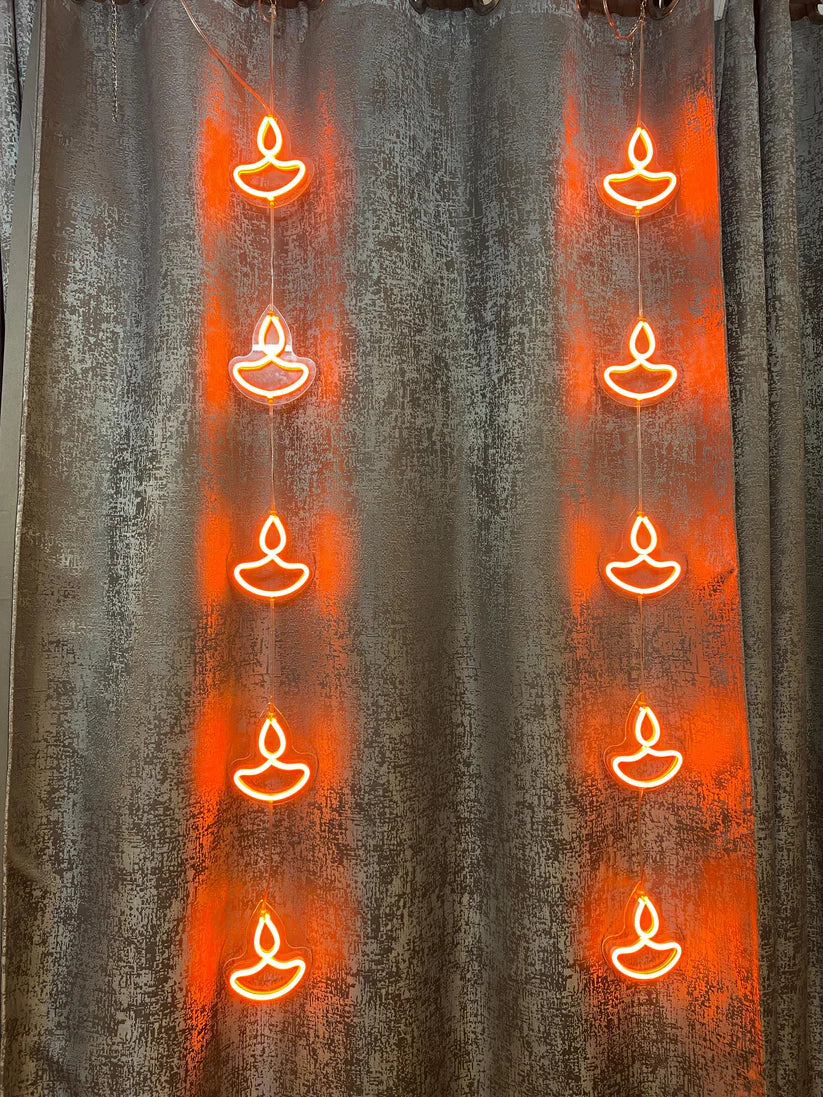 Neon Light Diya Toran, Diwali decorations, Navratri lights, festival decor, LED Diya, festive lighting, home decor, party decorations.