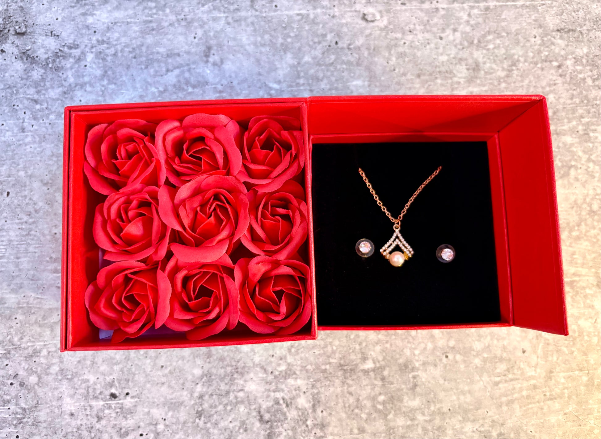 Red Rose Flower Box with Hidden Necklace & Earrings | Valentine Gift 💎💝