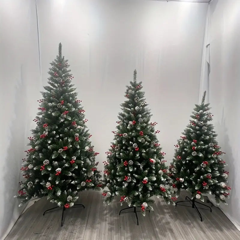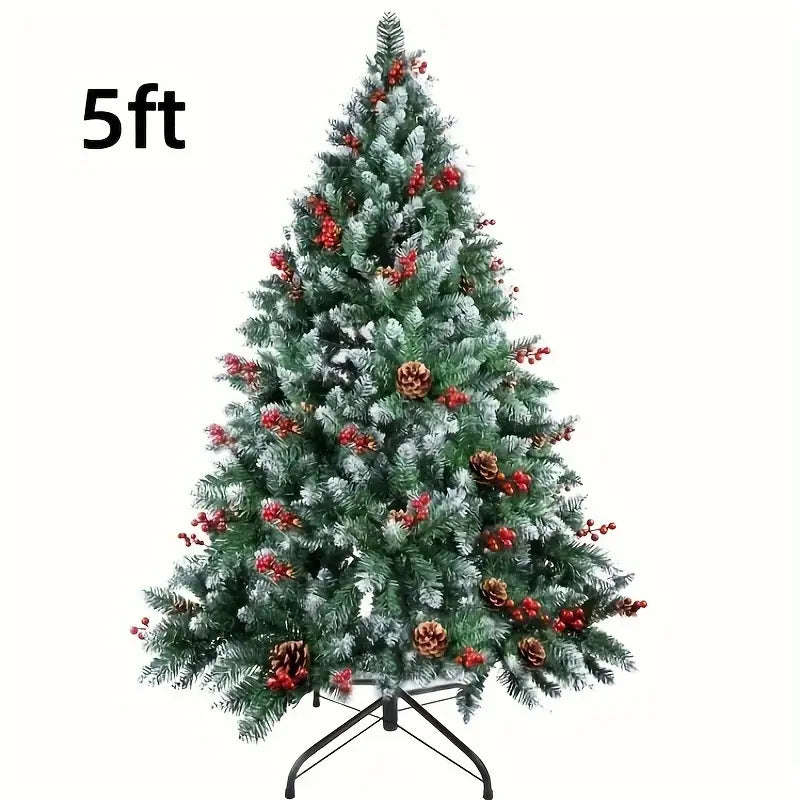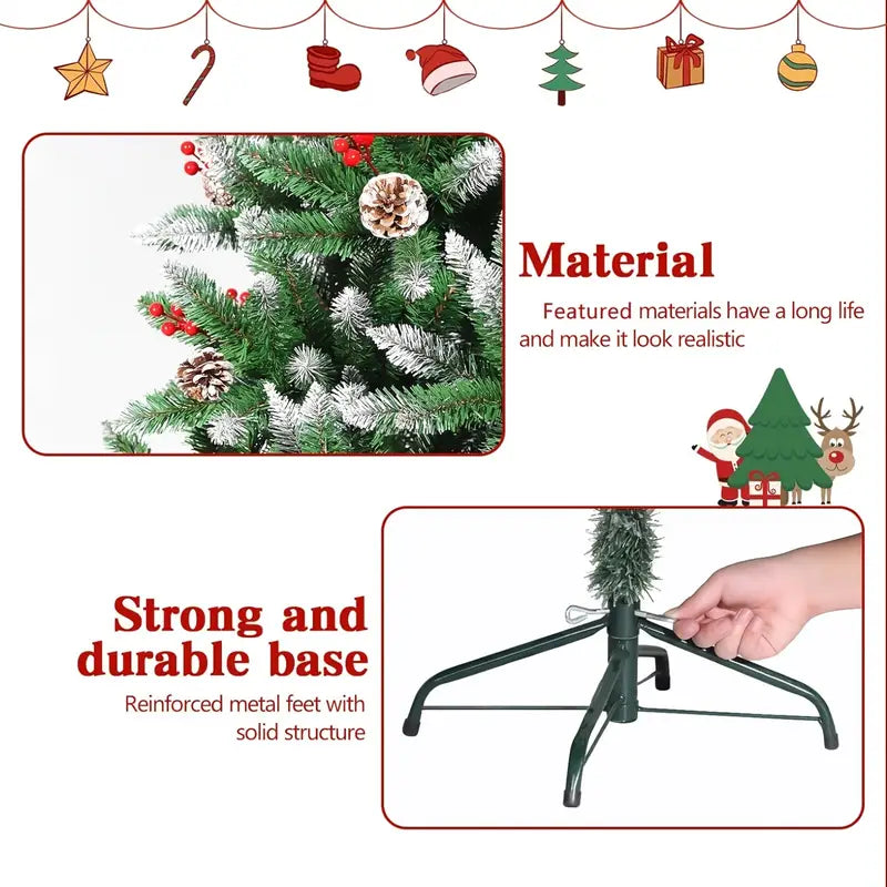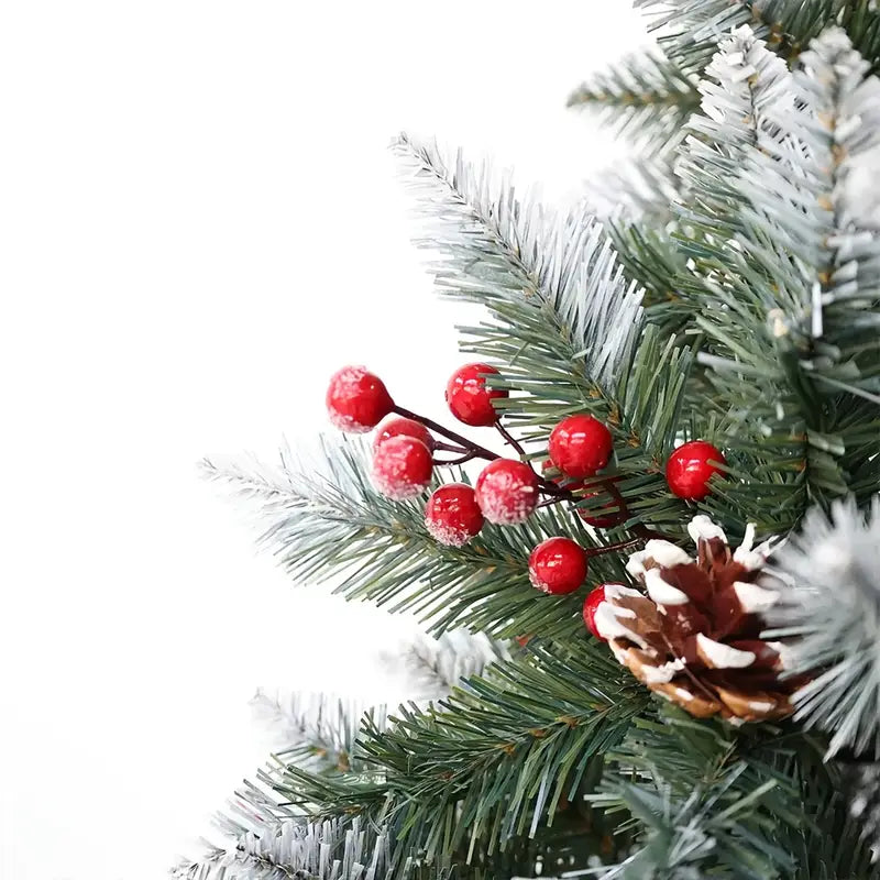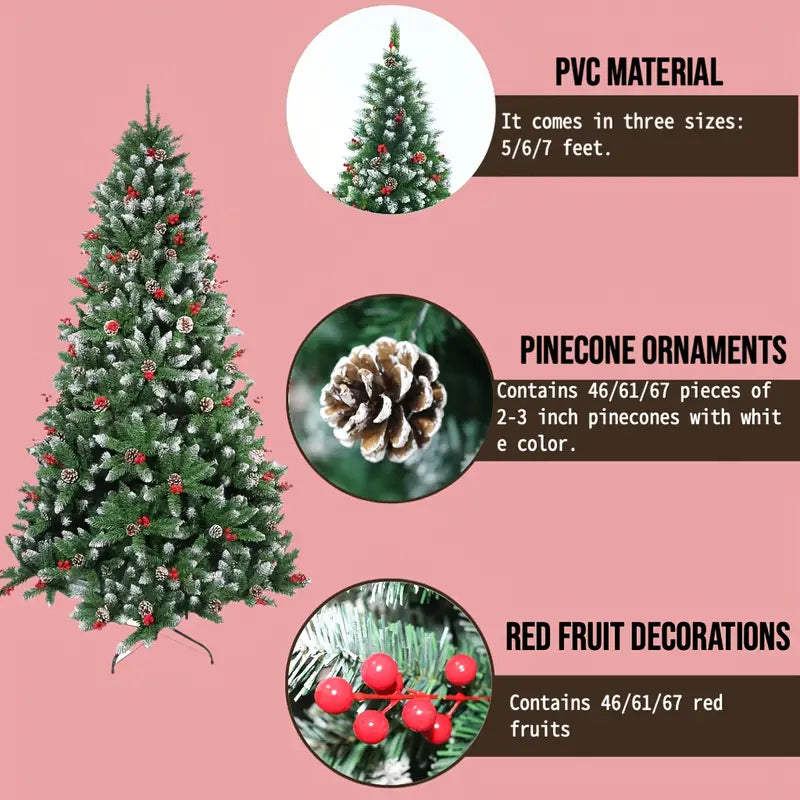 Snow Flocked Christmas Tree with Pine Cones & Red Berries (4–8ft)