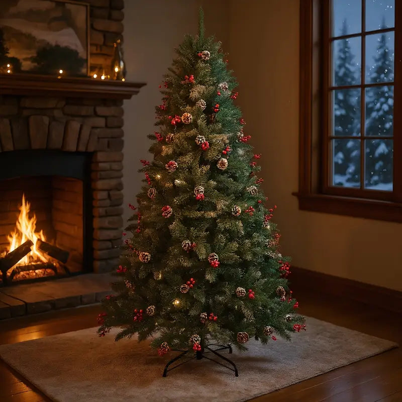 - Natural Accents: Adorned with lifelike pine cones and red berries for a warm, cozy holiday feel.