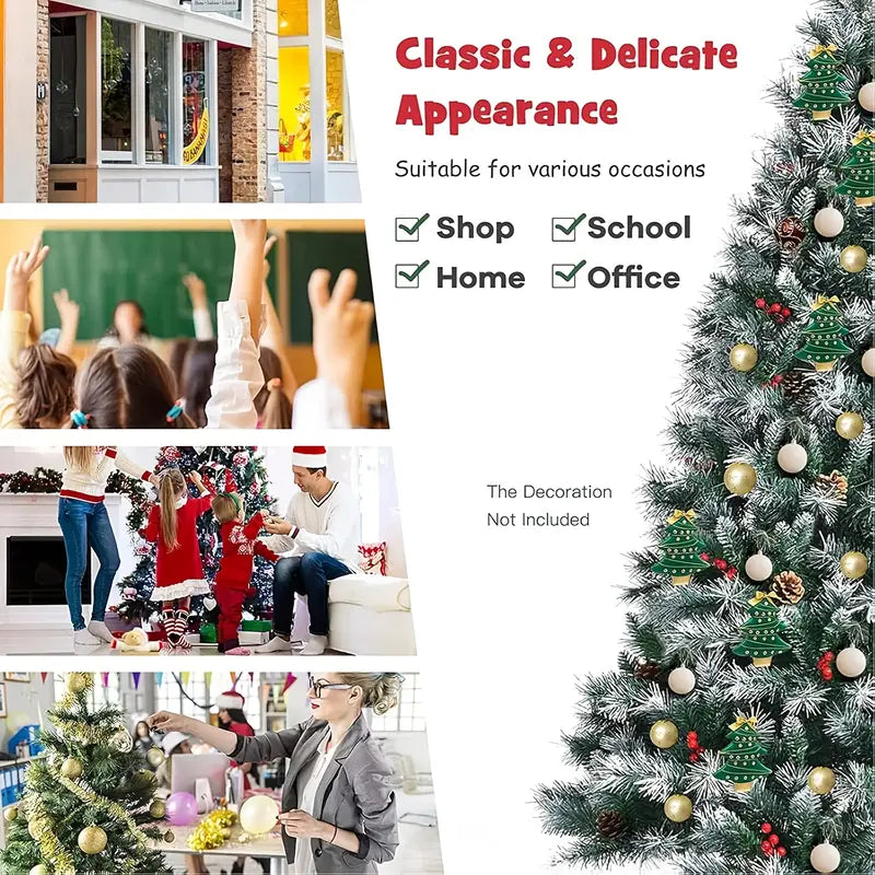 - Realistic Snow-Flocked Design: Lush green branches dusted with artificial snow for a wintery, elegant appearance.