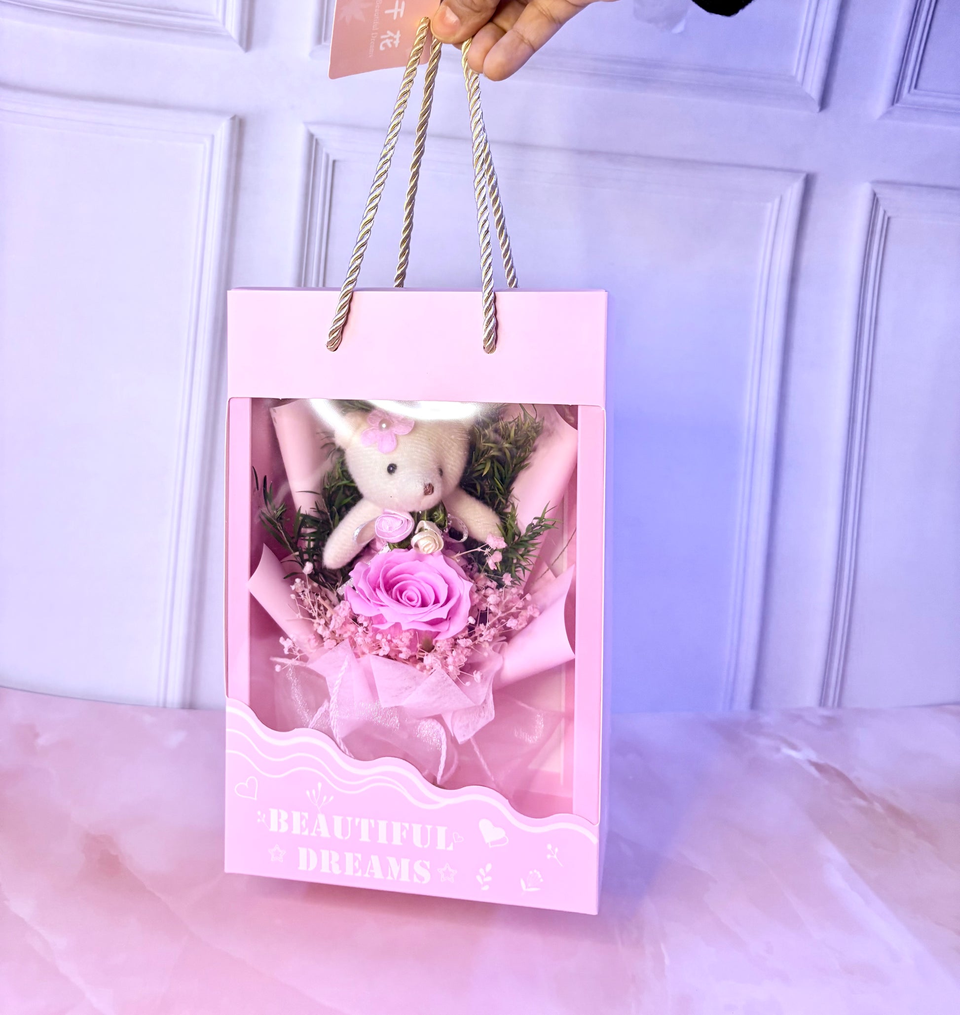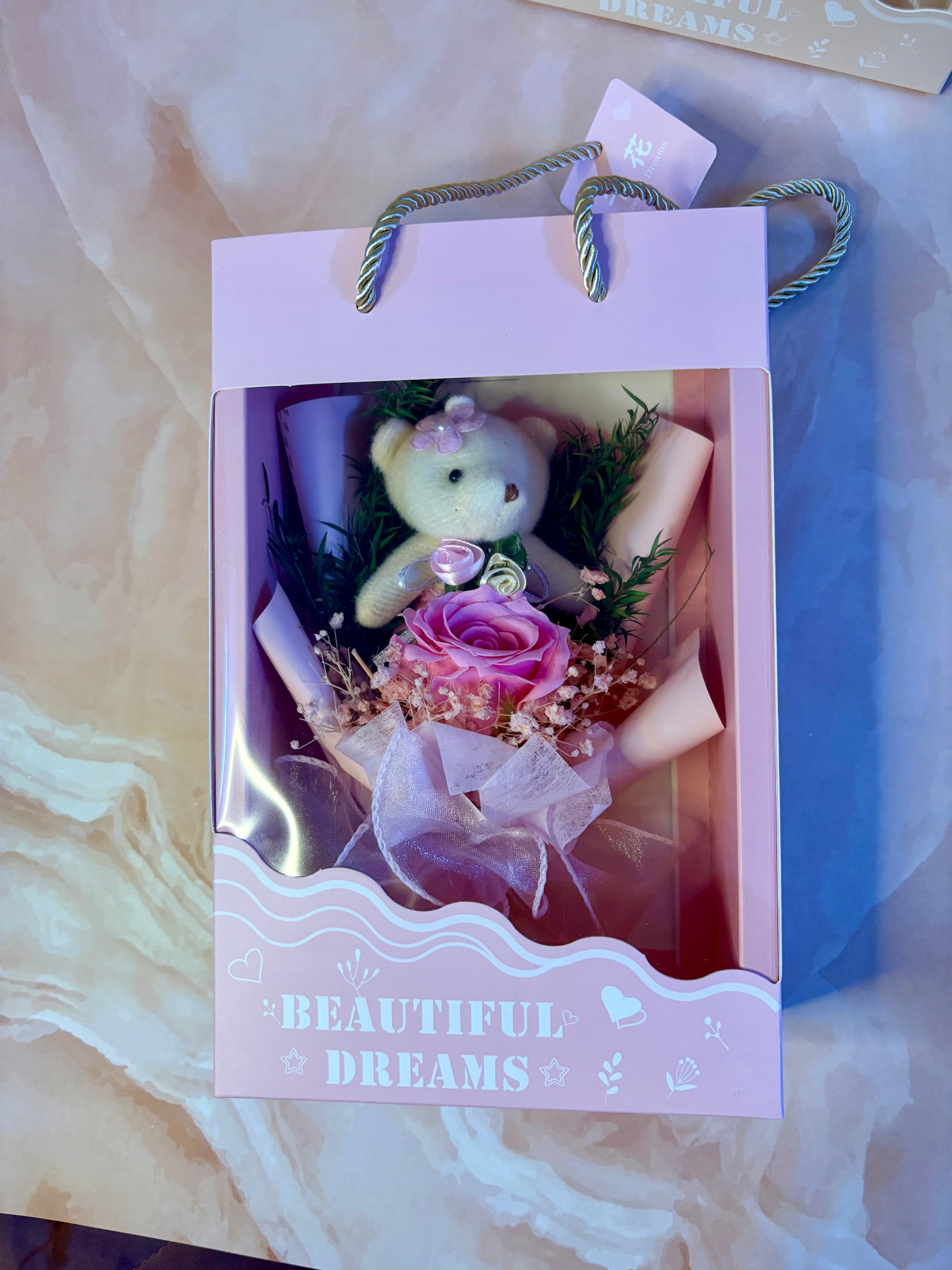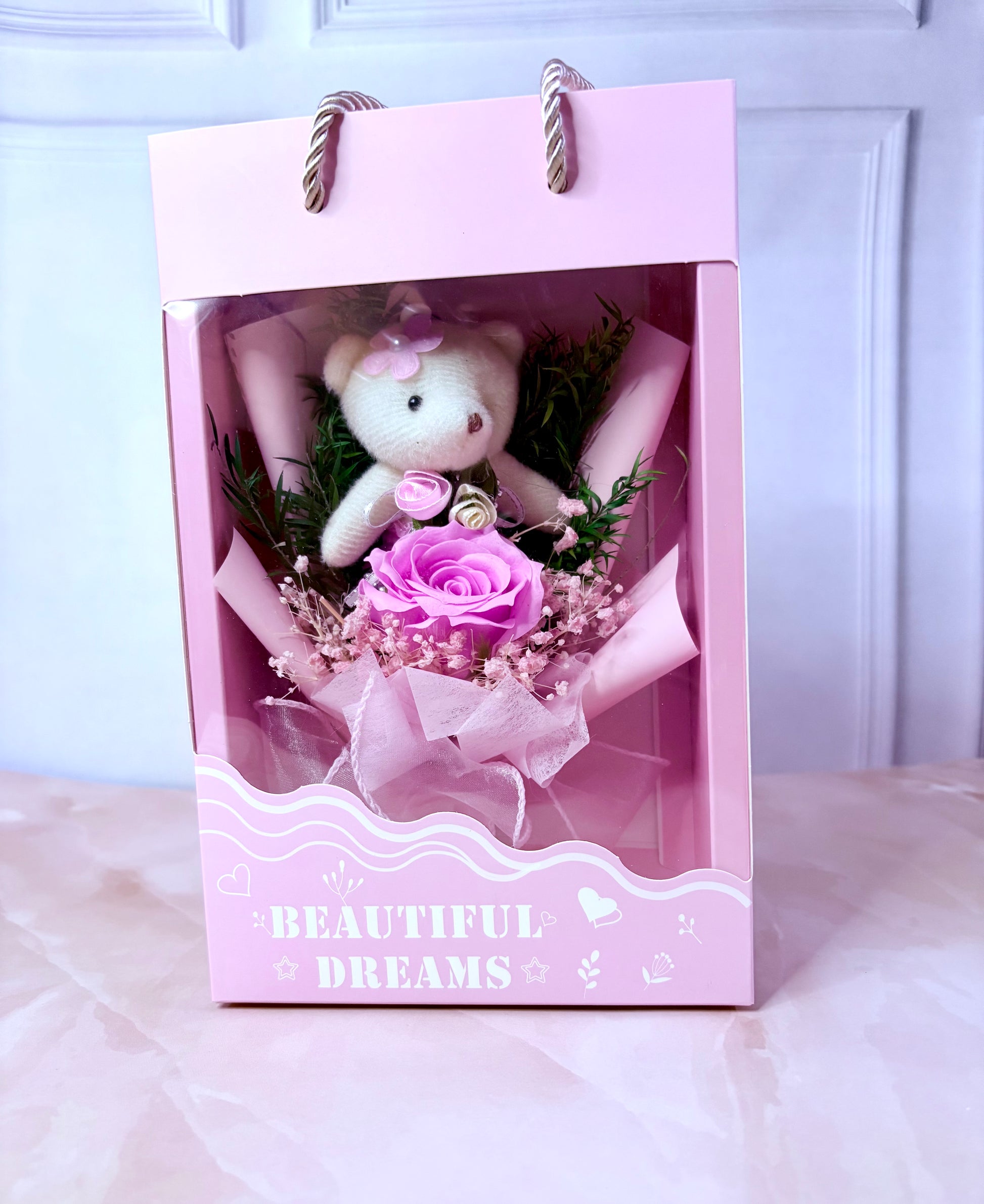 Make your loved one smile with this adorable artificial teddy flower bouquet—a perfect blend of sweetness and elegance 💖 Featuring beautiful artificial flowers paired with a cute teddy bear, this bouquet is a heartfelt gift that lasts forever.
