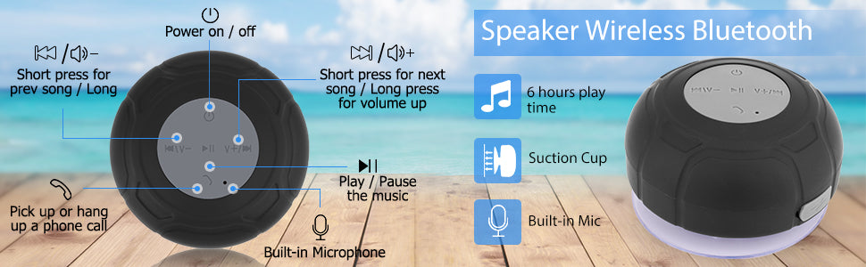Waterproof Bluetooth Speaker with Suction Cup & LED lighting