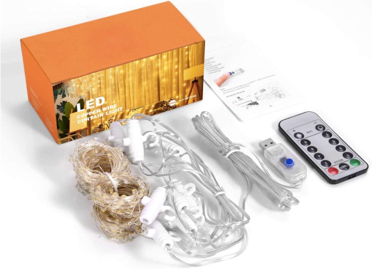 Window Curtain String Light 300 LED 8 Lighting Modes Fairy Lights Remote Control USB Powered Waterproof lights for home decoration light Diwali Valentines Bedroom Party Wedding Diwali (Warm White)